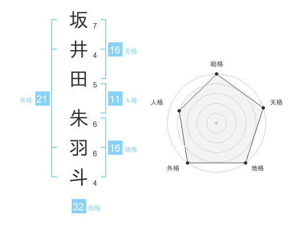 坂井田 朱羽斗さんを姓名の画数から五運を鑑定