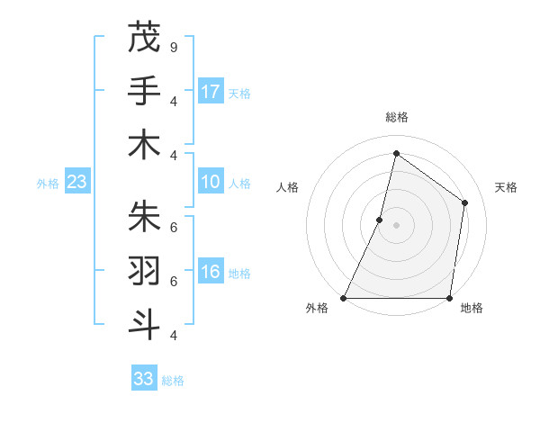 茂手木 朱羽斗さんの総格は33画の4点!