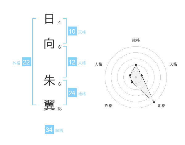 日向 朱翼さんの総格は34画の2点!