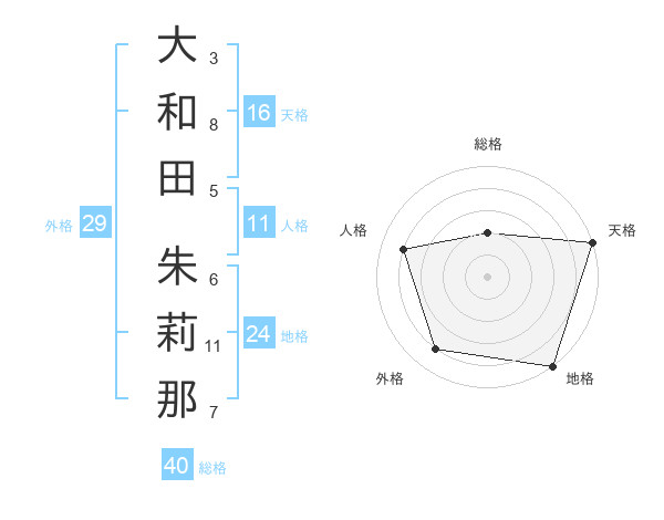 大和田 朱莉那さんを姓名の画数から五運を鑑定