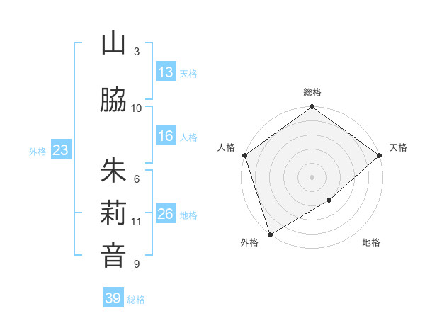 山脇 朱莉音さんを姓名の画数から五運を鑑定