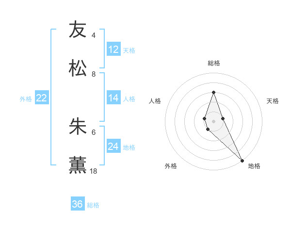 友松 朱薫さんの地格は24画の5点!