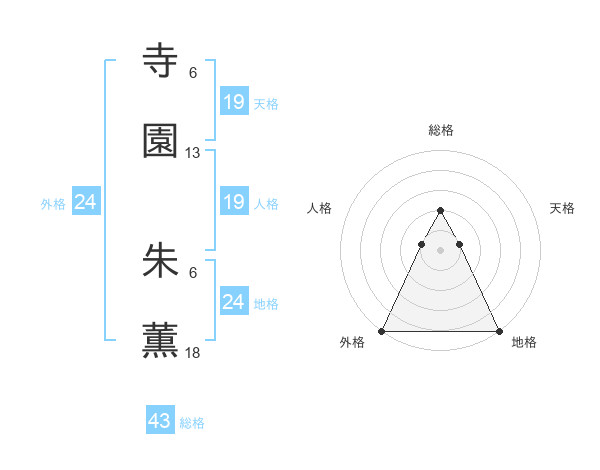寺園 朱薫さんの地格は24画の5点!