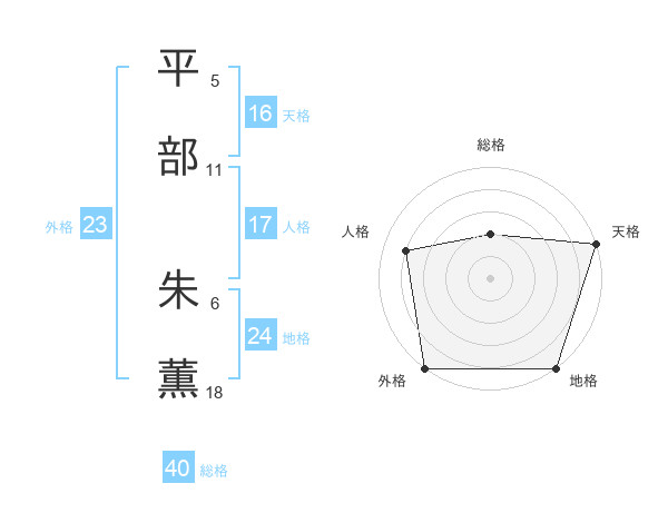 平部 朱薫さんの外格は23画の5点!