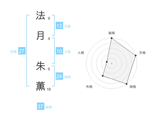 法月 朱薫さんの総格は37画の5点!
