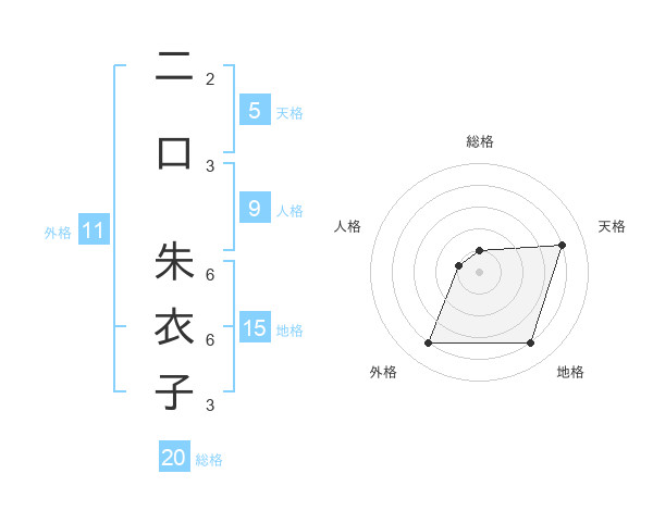 二口 朱衣子さんを姓名の画数から五運を鑑定