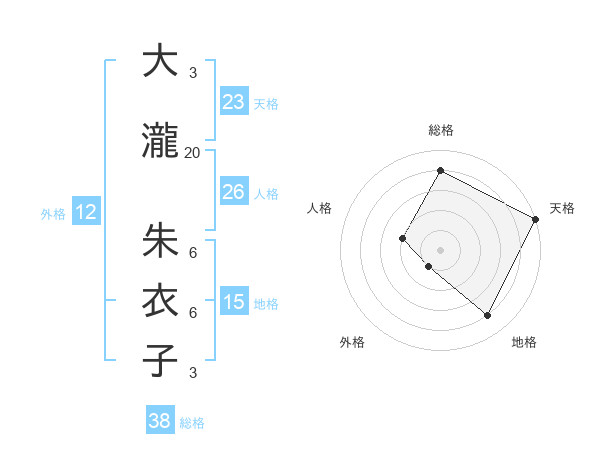 大瀧 朱衣子さんを姓名の画数から五運を鑑定
