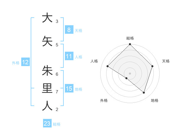 大矢 朱里人さんを姓名の画数から五運を鑑定