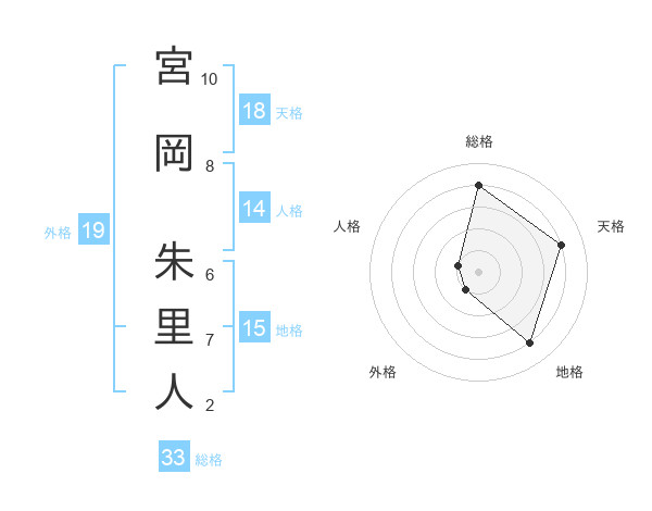 宮岡 朱里人さんを姓名の画数から五運を鑑定