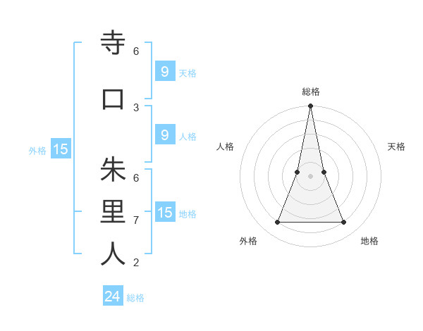 寺口 朱里人さんの総格は24画の5点!