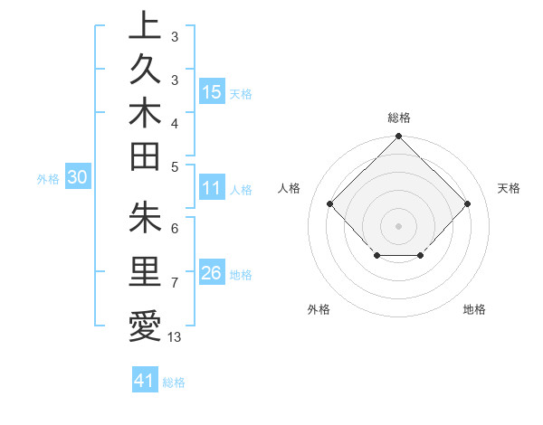 上久木田 朱里愛さんを姓名の画数から五運を鑑定