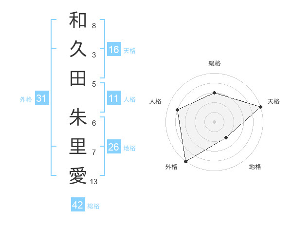 和久田 朱里愛さんを姓名の画数から五運を鑑定
