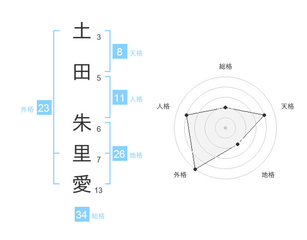 土田 朱里愛さんを姓名の画数から五運を鑑定