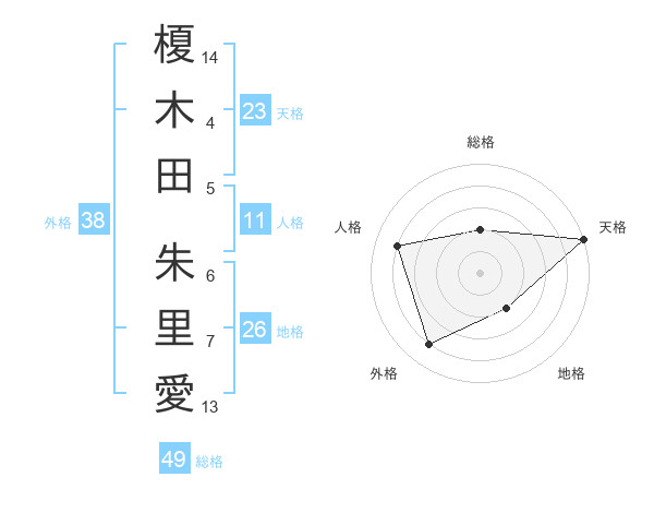榎木田 朱里愛さんの天格は23画の5点!