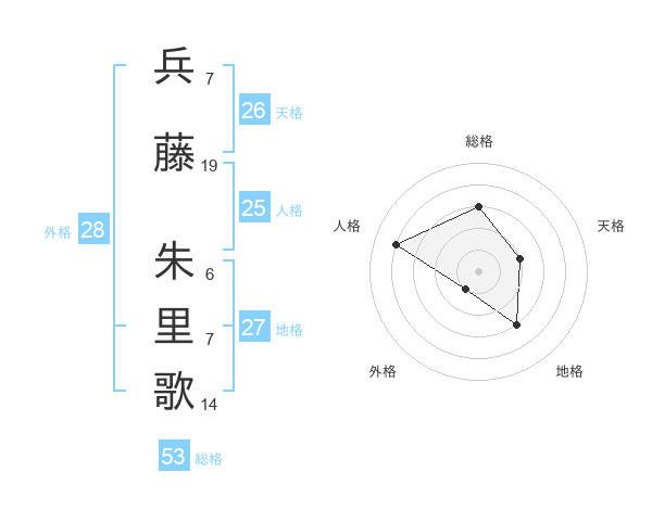 兵藤 朱里歌さんの総格は53画の3点!