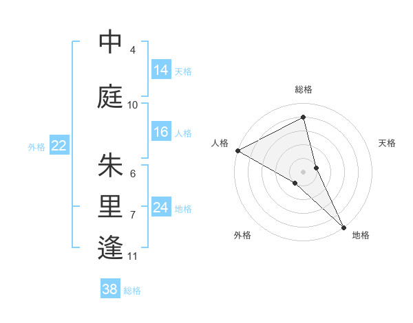中庭 朱里逢さんの総格は38画の4点!