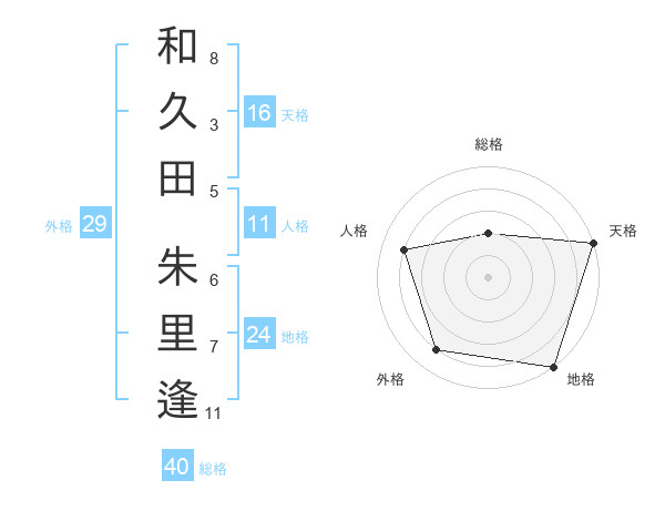 和久田 朱里逢さんを姓名の画数から五運を鑑定