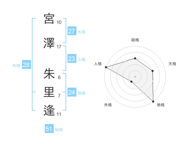 宮澤 朱里逢さんの総格は51画の3点!