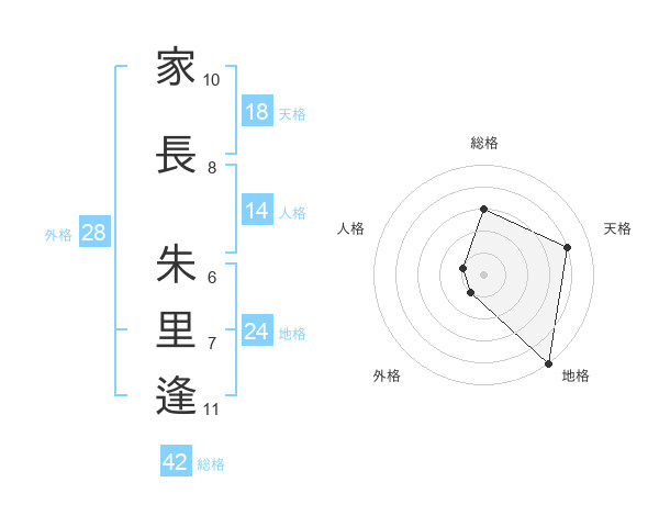 家長 朱里逢さんを姓名の画数から五運を鑑定