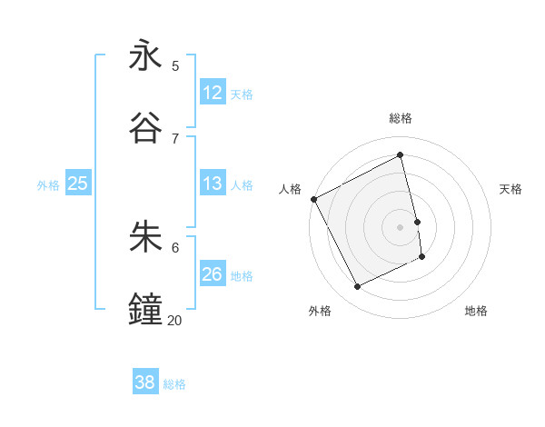 永谷 朱鐘さんの総格は38画の4点!