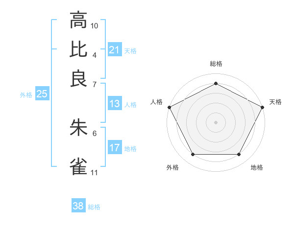 高比良 朱雀さんの天格は21画の5点!