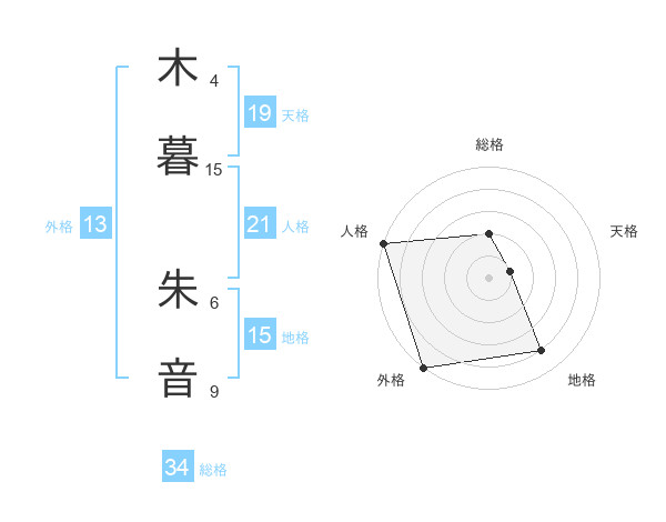 木暮 朱音さんの天格は19画の1点!