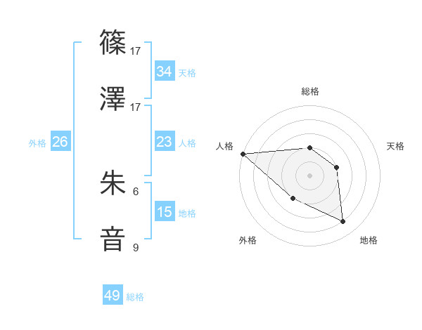 篠澤 朱音さんを姓名の画数から五運を鑑定
