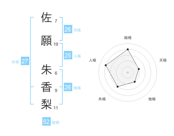 佐願 朱香梨さんの総格は52画の4点!