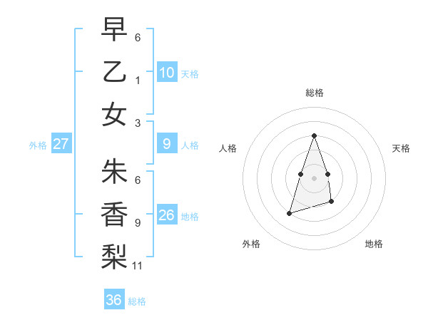早乙女 朱香梨さんを姓名の画数から五運を鑑定