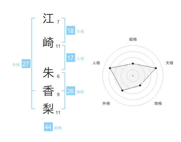 江崎 朱香梨さんを姓名の画数から五運を鑑定