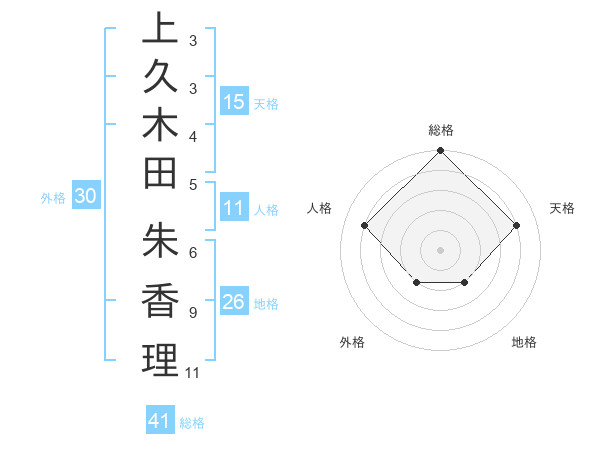 上久木田 朱香理さんを姓名の画数から五運を鑑定