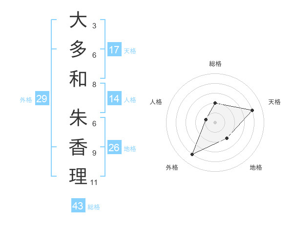 大多和 朱香理さんを姓名の画数から五運を鑑定