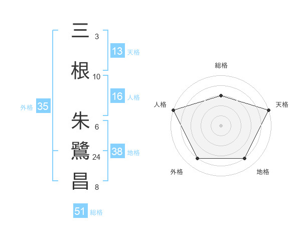 三根 朱鷺昌さんを姓名の画数から五運を鑑定