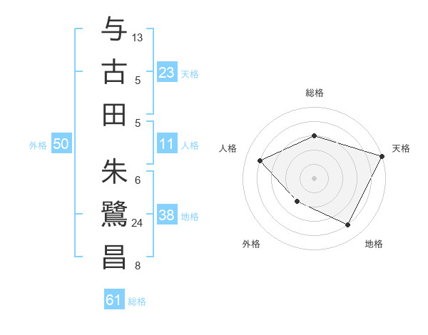 与古田 朱鷺昌さんを姓名の画数から五運を鑑定