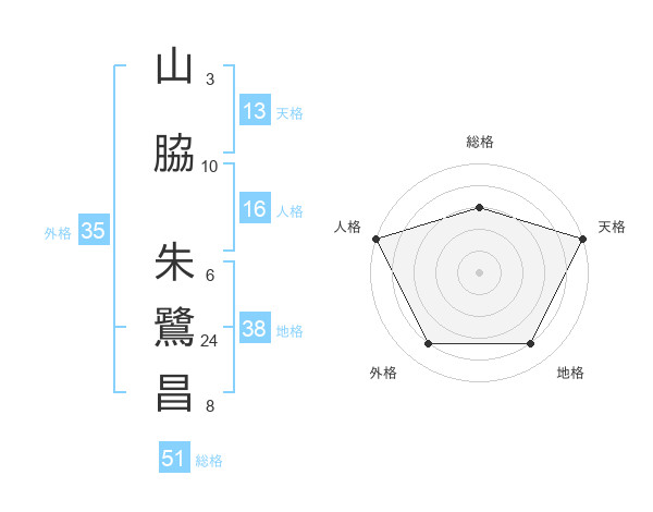 山脇 朱鷺昌さんを姓名の画数から五運を鑑定