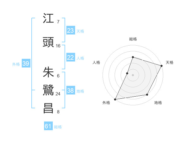 江頭 朱鷺昌さんの外格は39画の5点!