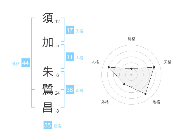 須加 朱鷺昌さんを姓名の画数から五運を鑑定