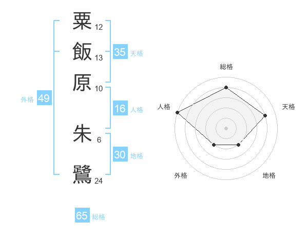 粟飯原 朱鷺さんの総格は65画の4点!