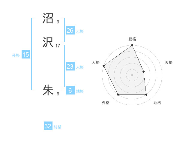 沼沢 朱さんの総格は32画の5点!