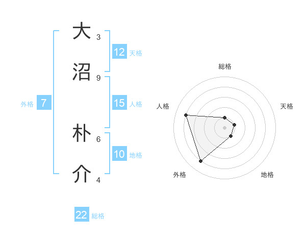 大沼 朴介さんを姓名の画数から五運を鑑定