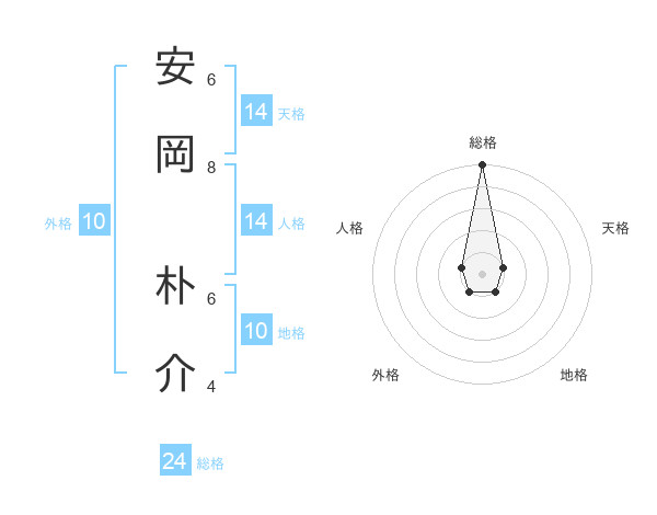 安岡 朴介さんを姓名の画数から五運を鑑定