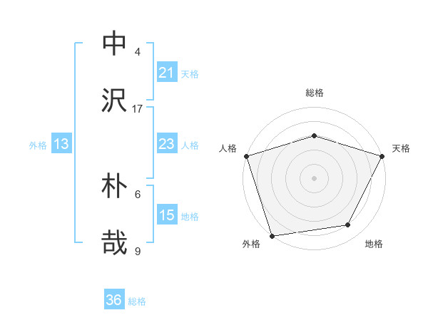 中沢 朴哉さんの天格は21画の5点!