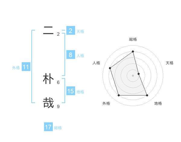 二 朴哉さんの外格は11画の4点!