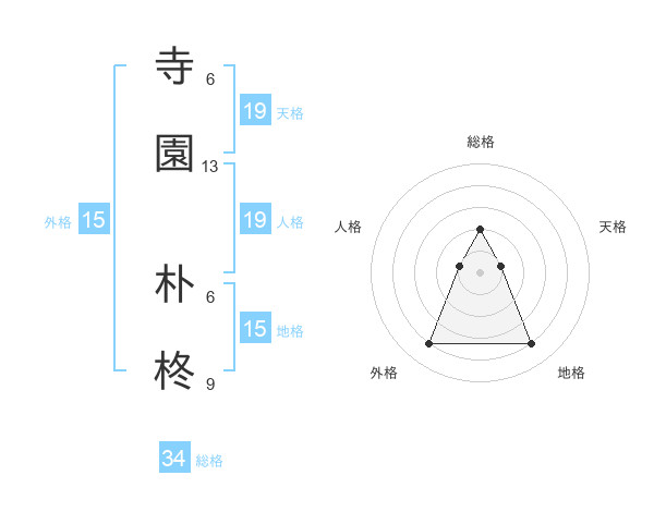 寺園 朴柊さんの総格は34画の2点!