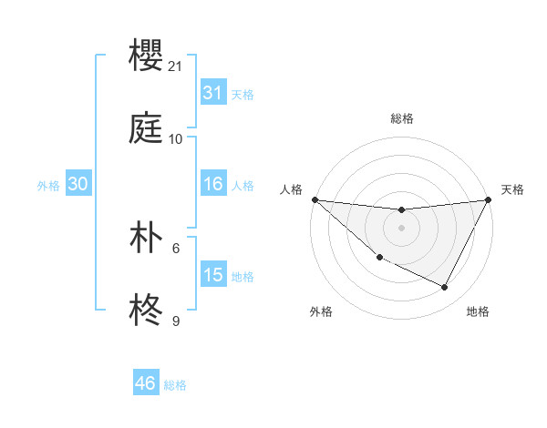 櫻庭 朴柊さんの総格は46画の1点!