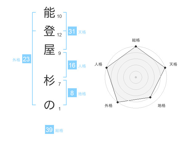 能登屋 杉のさんを姓名の画数から五運を鑑定