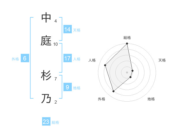 中庭 杉乃さんを姓名の画数から五運を鑑定