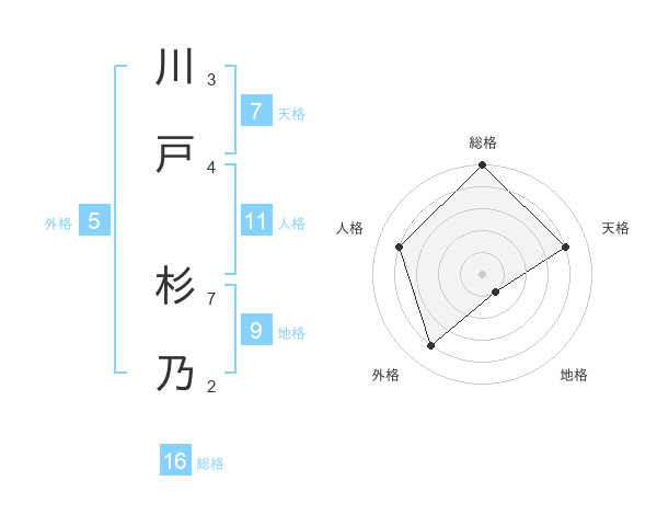 川戸 杉乃さんを姓名の画数から五運を鑑定