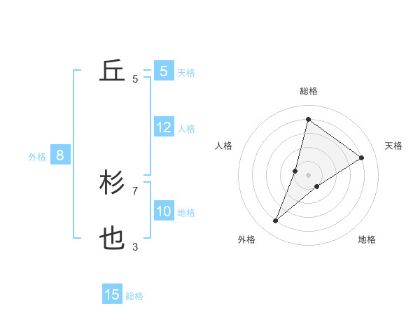 丘 杉也さんの総格は15画の4点!