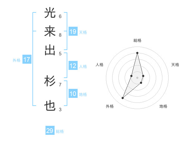 光来出 杉也さんを姓名の画数から五運を鑑定